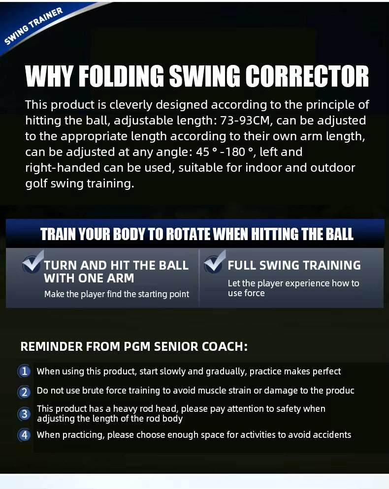 Refine your swing mechanics with the PGM HGB023 Golf Swing Trainer, engineered to help golfers master posture, rotation, and impact control. Featuring a foldable stainless steel shaft, adjustable length, and angle settings, this trainer supports both left- and right-handed players. The ergonomic grip and weighted head simulate real swing dynamics, making it ideal for warm-ups, drills, and full-swing practice.