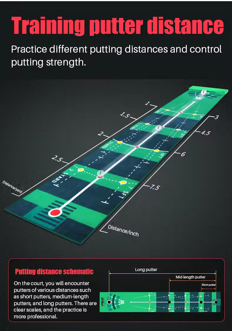- 3M Practice Length: Ample space for long and short putts with built-in alignment guides to improve accuracy.