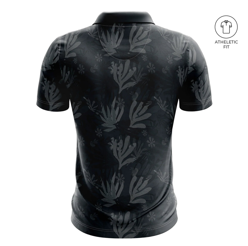 Men's Night Fern Golf Athletic Fit Golf Polo - Black