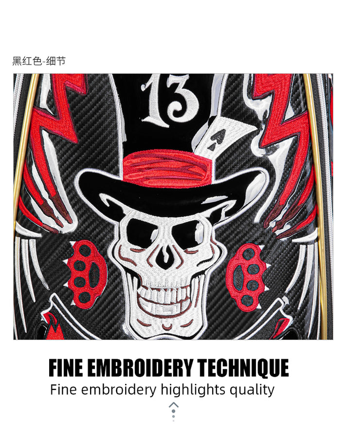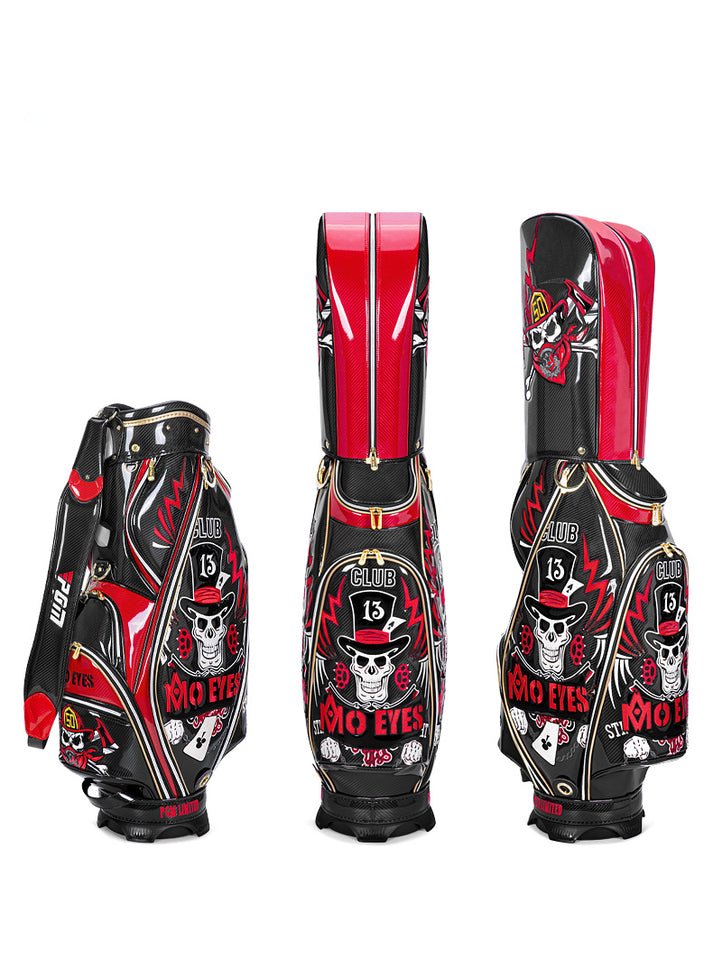 levate your golf game with the PGM QB112 Abstract Cart Bag, a bold fusion of luxury design and professional-grade functionality. Crafted from premium waterproof PU leather, this tour-level cart bag features striking black and red abstract embroidery that commands attention on and off the course.