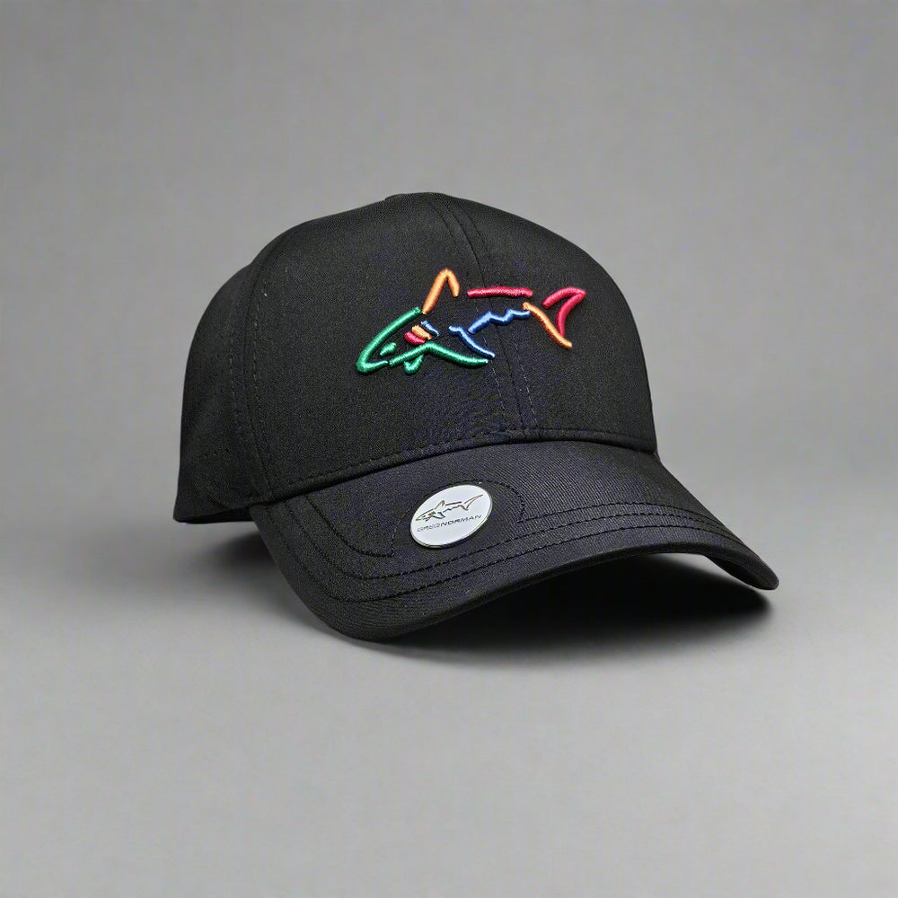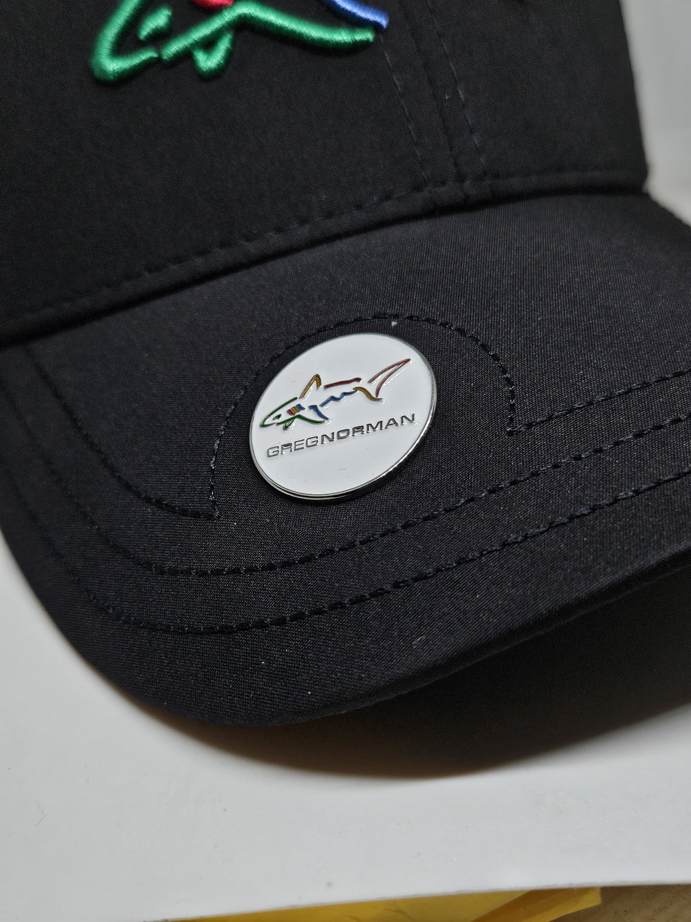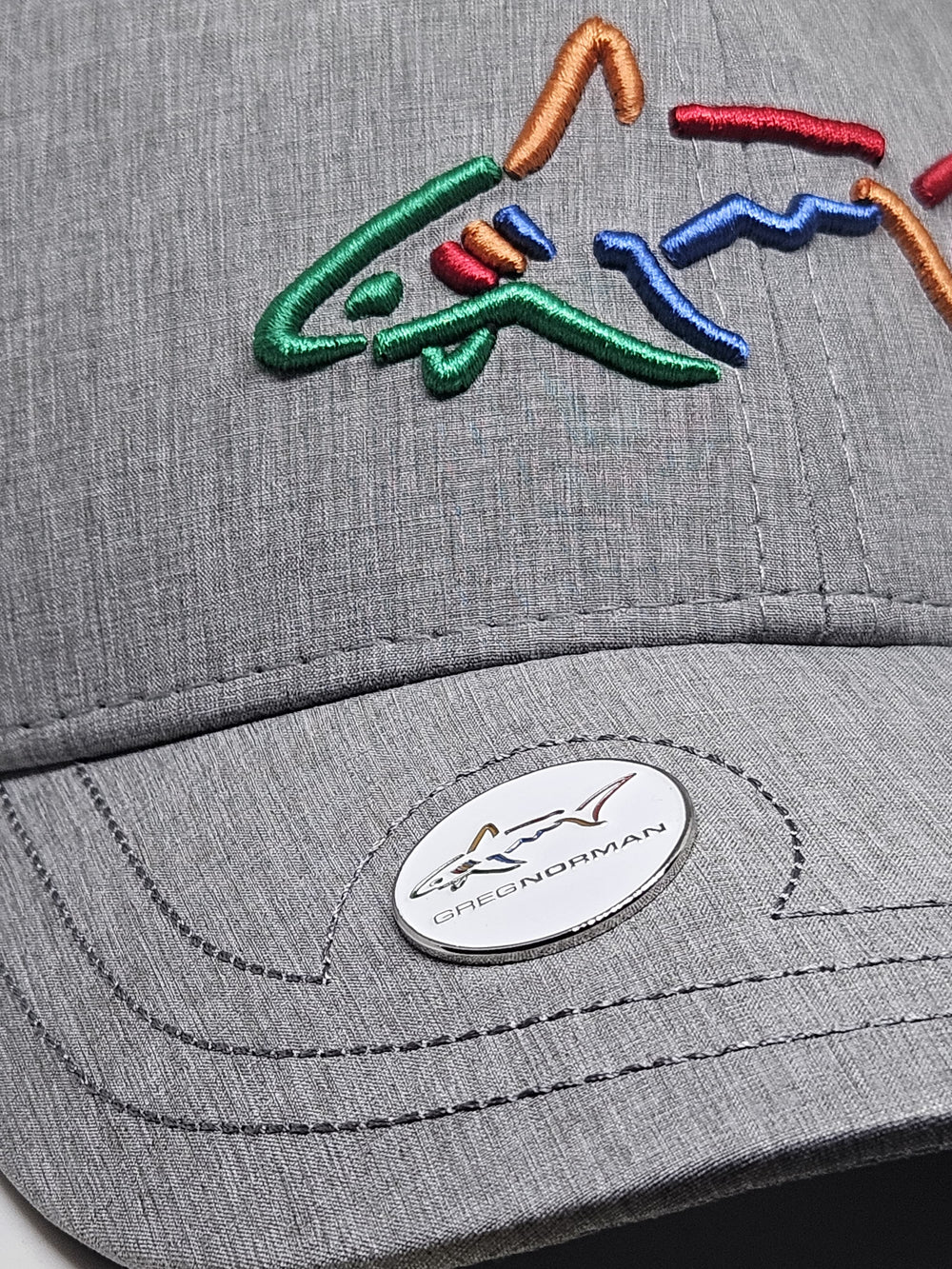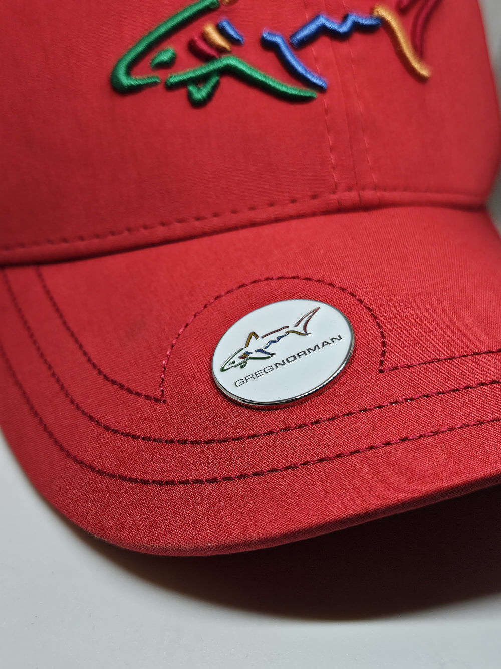 Elevate your game-day style with the Greg Norman Premium Golf Cap, designed for performance and convenience. This structured cap features a classic curved brim, adjustable strap, and a built-in magnetic ball marker for quick access on the green. The iconic Shark logo adds a bold touch, while the breathable fabric ensures comfort during long rounds. Whether you're teeing off or spectating, this cap blends utility with signature Greg Norman flair.