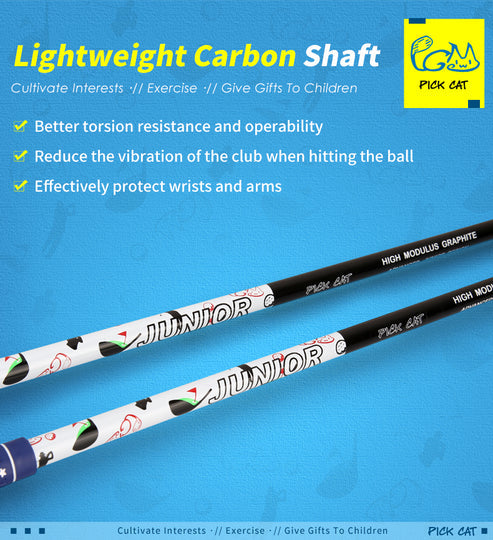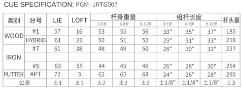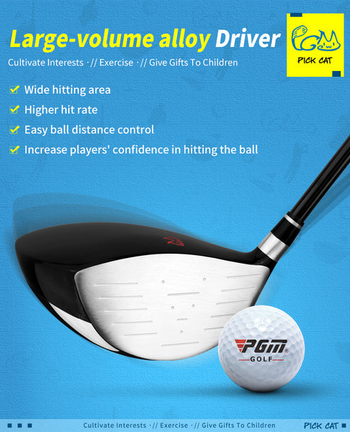The PGM JRTG007 is a complete junior golf club set designed to help young golfers build confidence and develop proper swing mechanics. Featuring a large-volume alloy driver, high-rebound irons, and an alloy putter, each club is engineered for ease of use and forgiveness. The ultra-light carbon shafts reduce vibration and protect growing wrists, while the stand bag with dual shoulder straps ensures comfortable carrying.