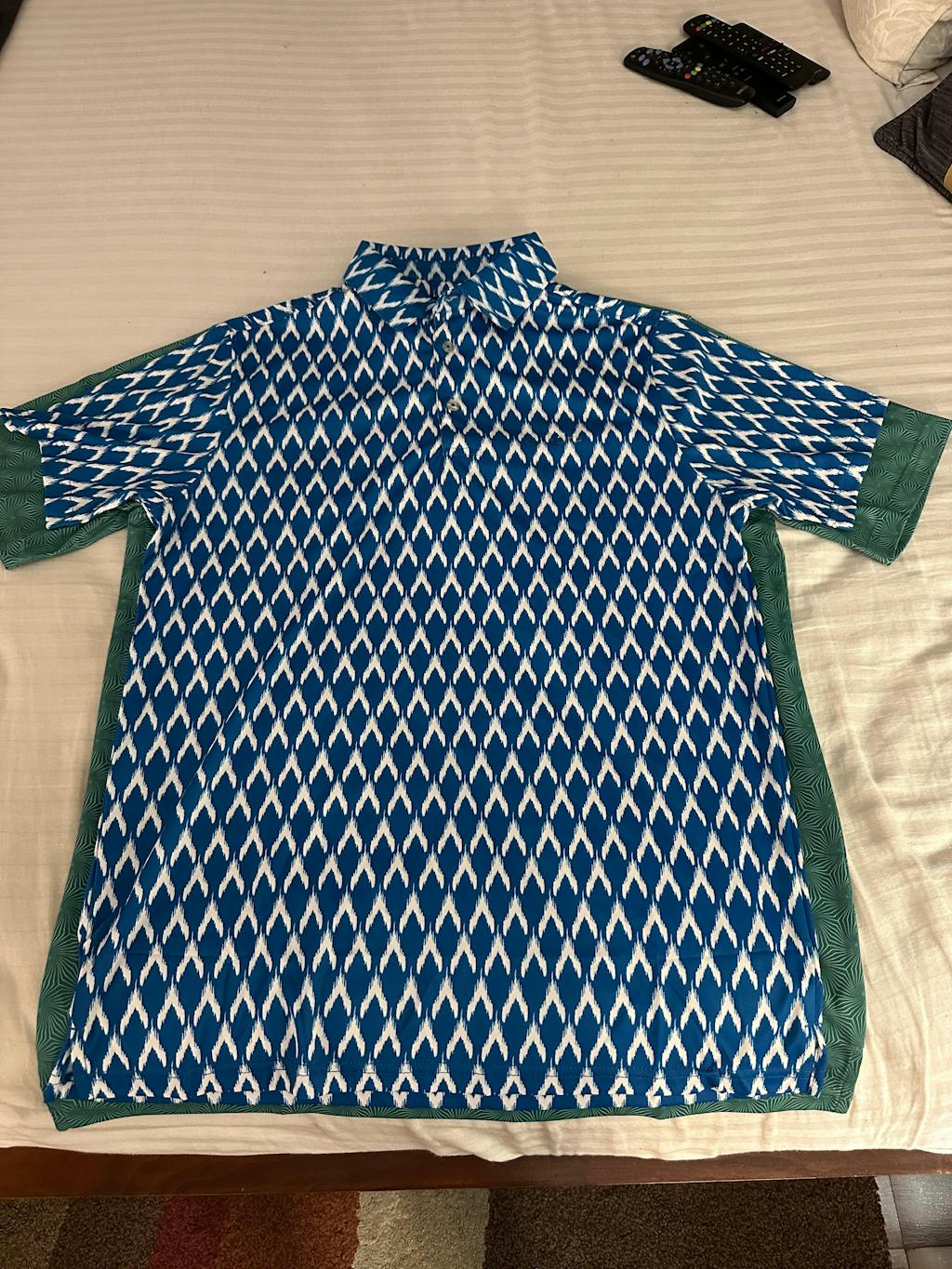 Code: AutoMen's Spiral Printed Golf Polo - Teal - S is backordered and will ship as soon as it is back in stock.