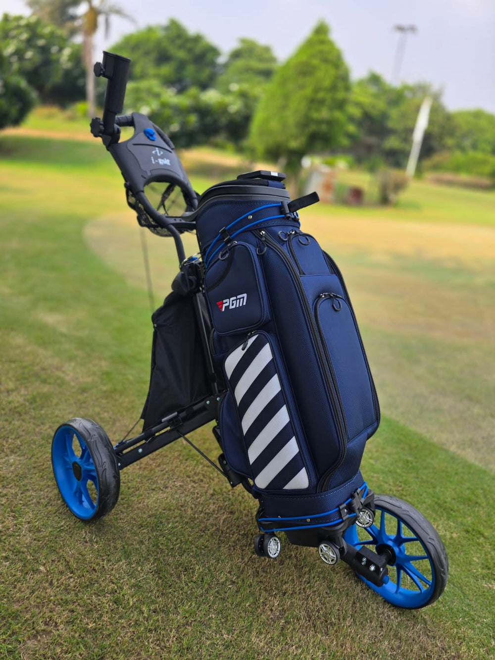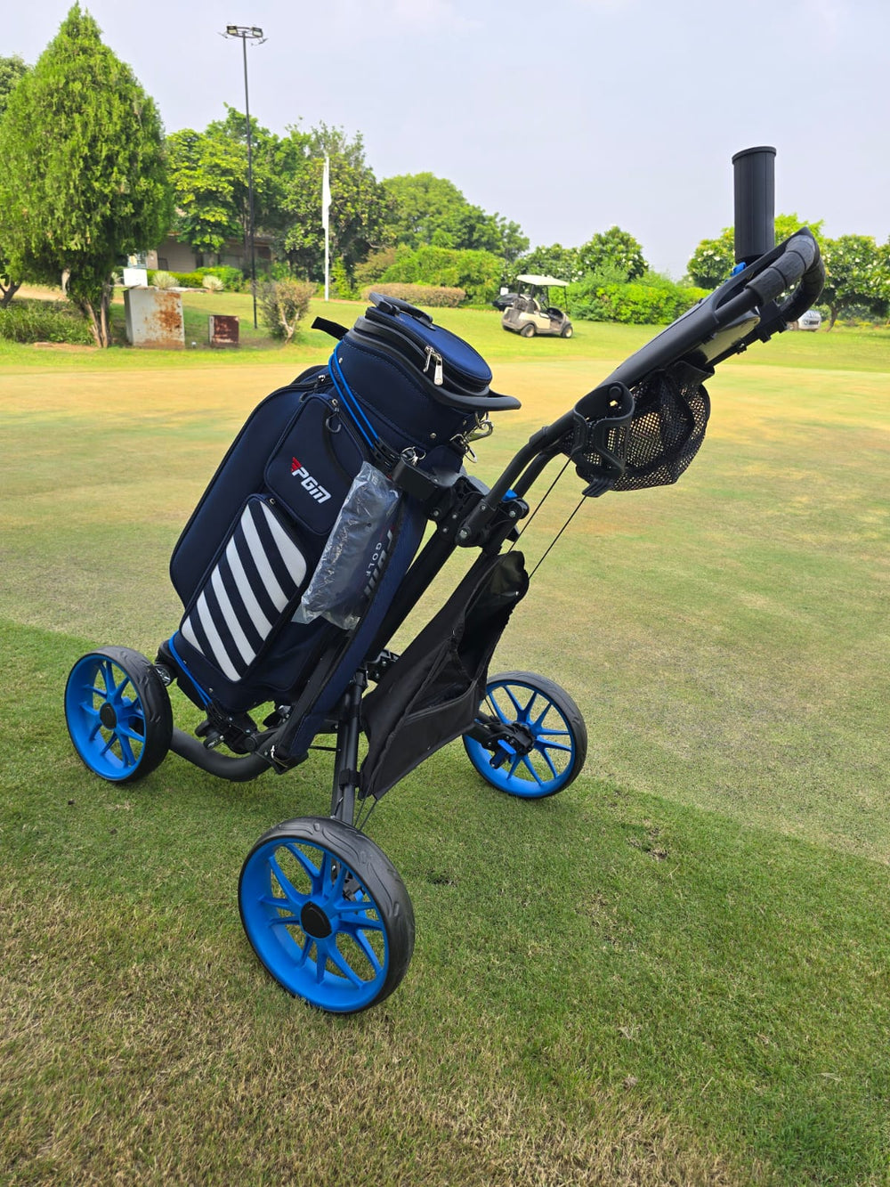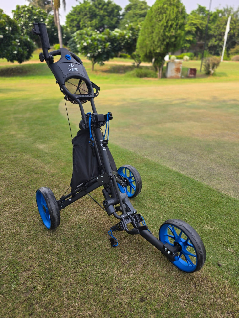 Auto AppliedGolf Tri-Glide Wheel Push Cart - Blue is backordered and will ship as soon as it is back in stock.