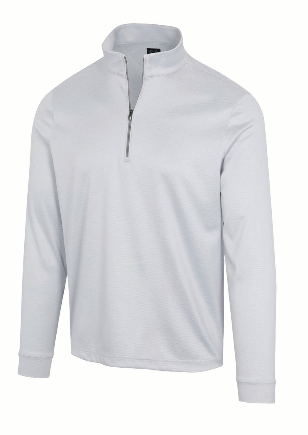 Add a layer of confidence to your game with the Clubhouse 1/4 Zip Pullover from Greg Norman. Designed for cooler rounds and clubhouse comfort, this pullover features a heathered finish and mock neck styling for a sleek, modern look. Crafted from PLAY DRY® moisture-wicking polyester interlock, it offers UPF 50+ sun protection and four-way stretch for unrestricted movement. Whether you're warming up or winding down, this pullover delivers technical performance and signature Greg Norman flair.