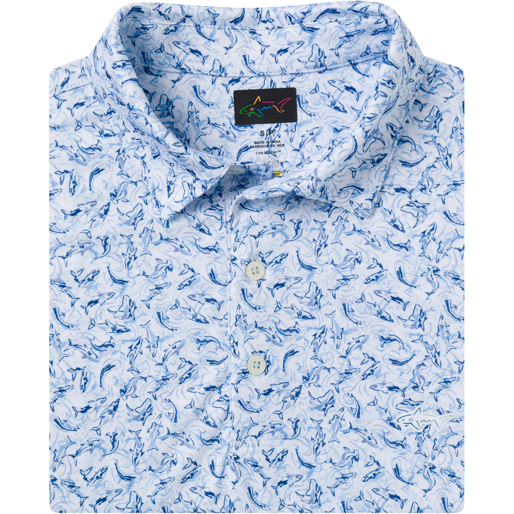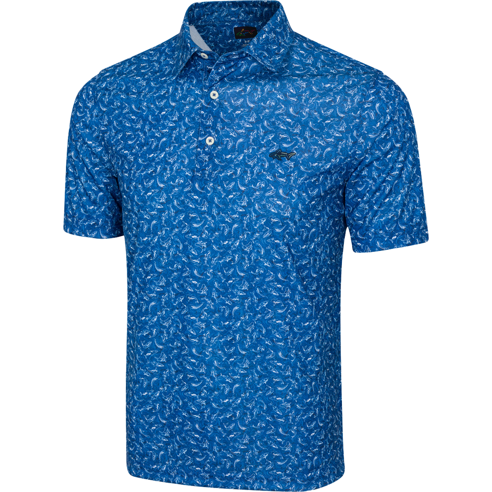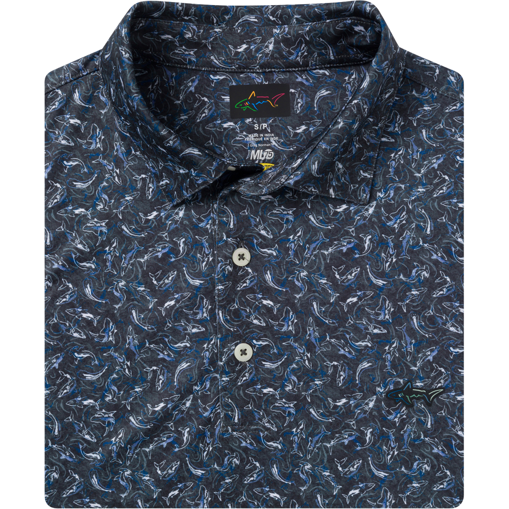 The most comfortable technical fabric in golf. Our industry-leading ML75 fabric offers advanced moisture wicking performance with a luxury look and hand feel. Shark Mode: Vacation Edition. Breezy, bold, and sun-safe— the ML75 Shark Frenzy Polo boats a print that’s all bite and beach vibes, on or off the fairway.