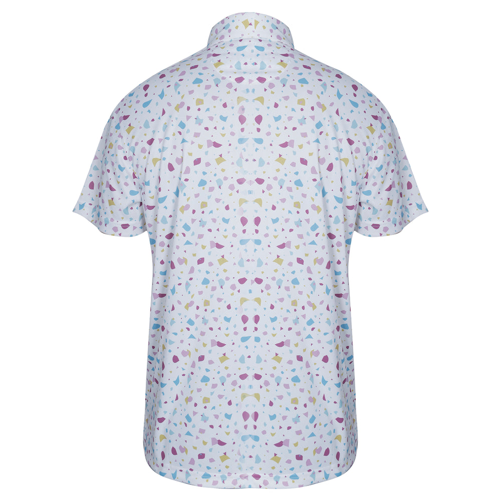 This Men’s White Printed Golf Polo T-Shirt is designed to provide ultimate comfort and durability. Its stretchable fabric allows for effortless movement and flexibility during any physical activity. Perfect for everyday wear or your next outing on the golf course.