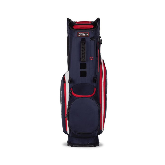 • The Titleist Hybrid 14 stand bag brings a cart-friendly design with superior organization to your golf game. A low-profile top cuff features 14 dividers to provide a separate space for each club in your set as well as Tour-inspired integrated handles for easy lifting and maneuvering. Eight pockets hold all the essentials from apparel and valuables to golf balls and tees. A convertible strap system allows you to carry the bag how you want, while a cart strap tunnel makes this bag versatile.