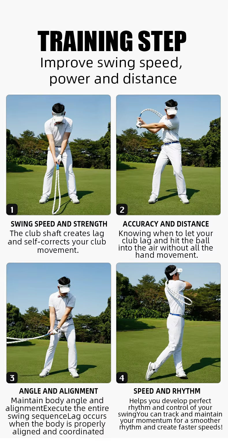Unlock your swing potential with the PGM HGB025 Golf Power Rope Swing Trainer, designed to enhance rhythm, speed, and strength. This polyester rope trainer mimics the feel of a full swing, helping golfers develop a smooth transition from the top and improve release timing. The anti-skid handle ensures a secure grip, while the rhythmic resistance builds muscle memory and swing tempo.