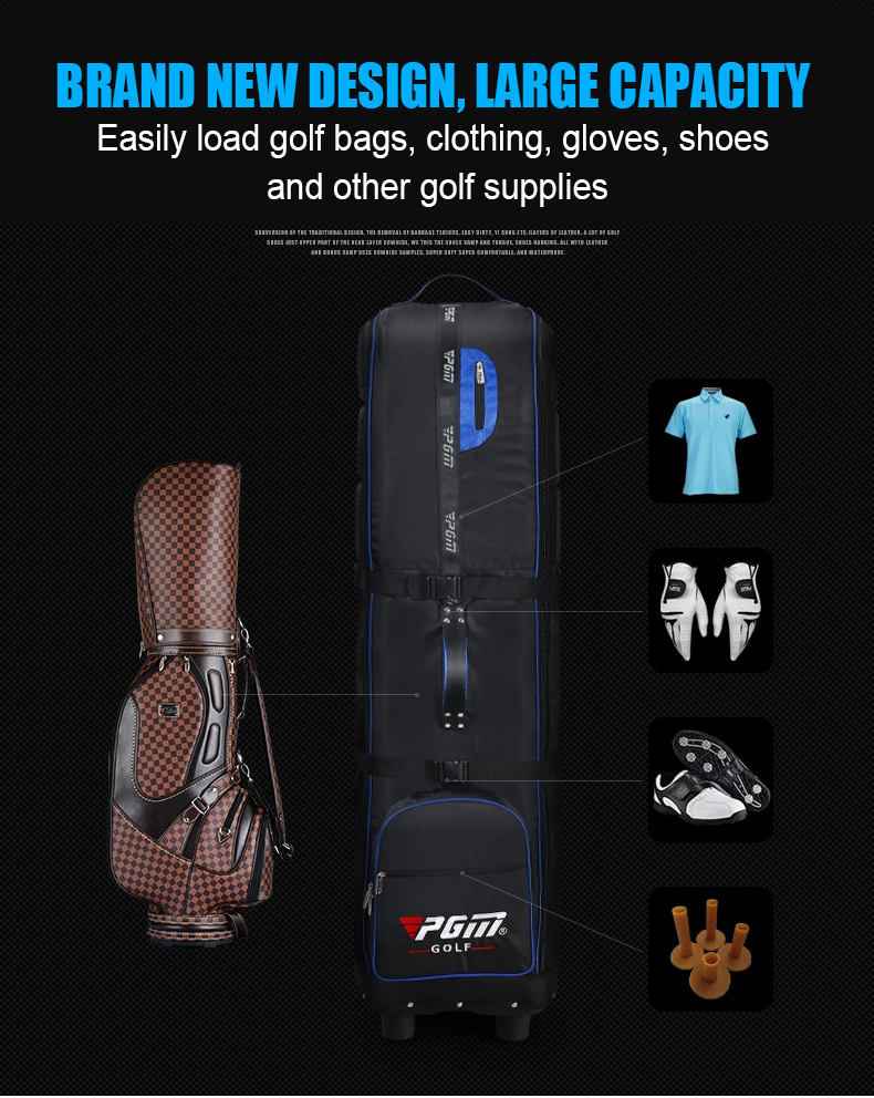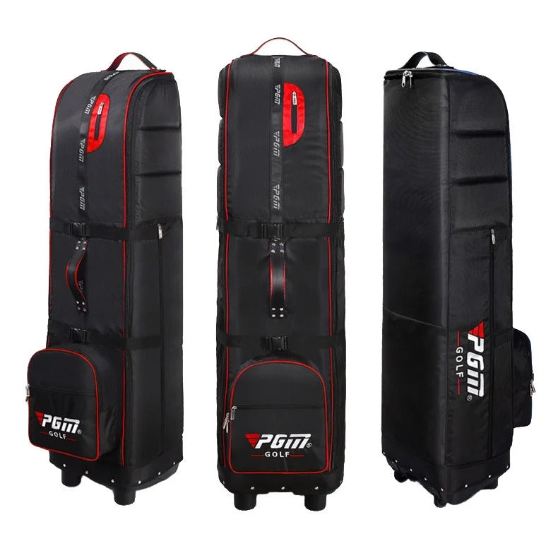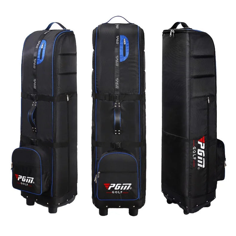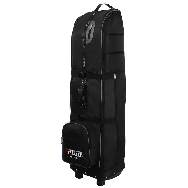 The PGM HKB009 is a high-capacity golf travel cover designed for airline check-in and long-distance transport. Made from 1600D waterproof nylon with impact-resistant cotton lining, it protects your gear from rain, abrasion, and collision. The reinforced rubber base, smooth dual wheels, and password lock offer durability and security, while the foldable design and dustproof storage bag make it easy to store and carry.