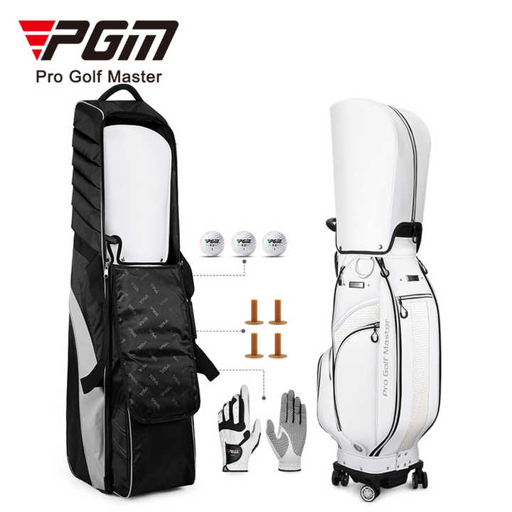 The PGM HKB013 is a high-capacity golf travel bag designed for airline check-in and long-distance transport. Built with jacquard PVC and embedded pearl cotton, it offers impact resistance, shock absorption, and abrasion protection for your clubs and gear. The silent universal wheels and combination lock make travel secure and effortless, while the spacious interior accommodates a full golf bag, shoes, apparel, and accessories.